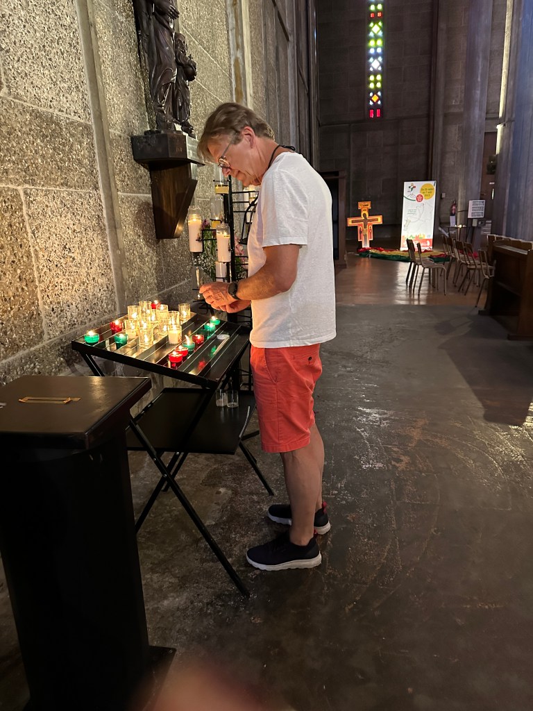 Fred og jeg benyttet søndag til besøke Saint Joseph kirke for å tenne lys og minnes Anne, søsteren til Fred som døde i fjor. Kirken er 100 meter høy og er gjenoppbygget etter bombingen av Le Havre