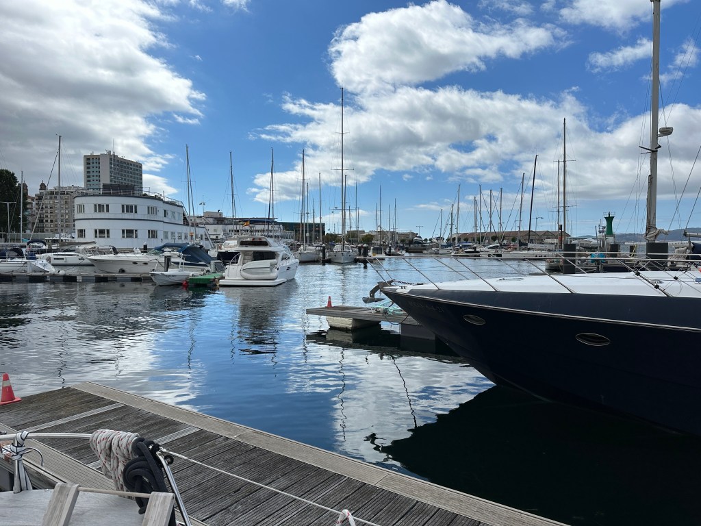Etter en god natts søvn og en rolig rusletur i den vakre byen er vi klar for å ta toget til Vigo. Herlig å se båten igjen. Vi er veldig fornøyd med marinaen i Vigo. Real Club de Nautico (RCNV) med Luis i spissen har gjort diverse små og store jobber mens vi har vært borte. I tillegg er marinaen strategisk plassert i sentrum av gamlebyen. Jeg har lest et sted at noen sammenligner Vigo med San Fransisco. Ikke vet jeg, for jeg har aldri vært der, men jeg kan skrive under på at det utrolig sjarmerende med de bratte gatene og grønne oasene langs waterfront.